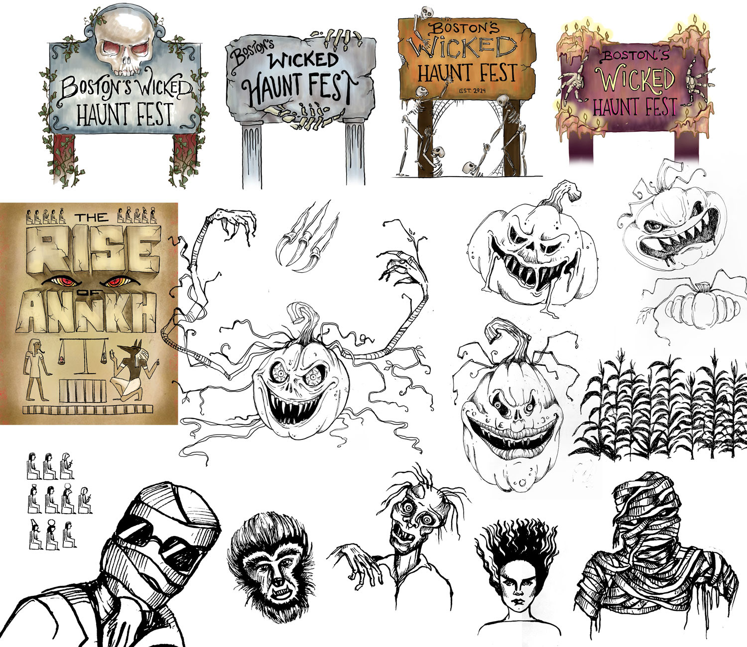 Boston’s Wicked Haunt Fest is a large-scale Halloween attraction based in Boston, Massachusetts. Working as Chief Graphic Designer and Artist in collaboration with the design firm Focus Drawn, I led the visual development of the brand and produced the full suite of graphic assets for the event.